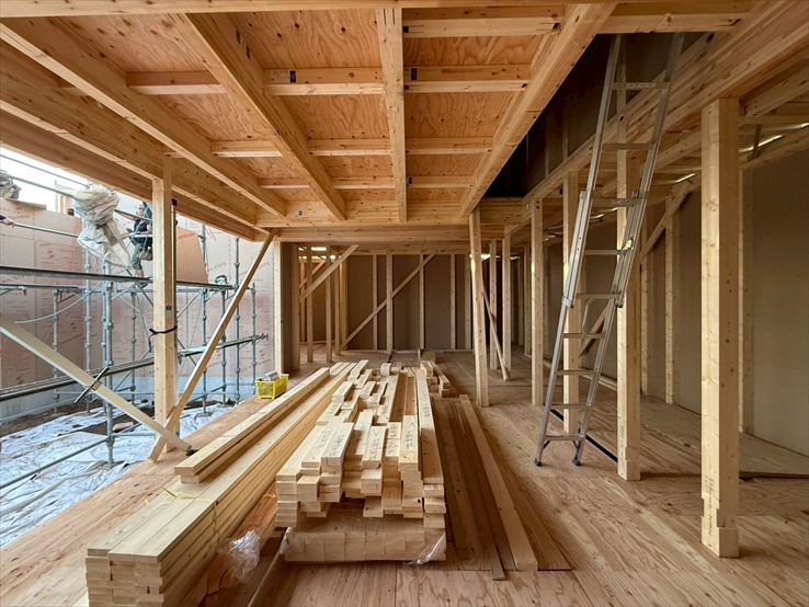 ガレージと中庭のある住まい[Number Nine]が上棟しました。