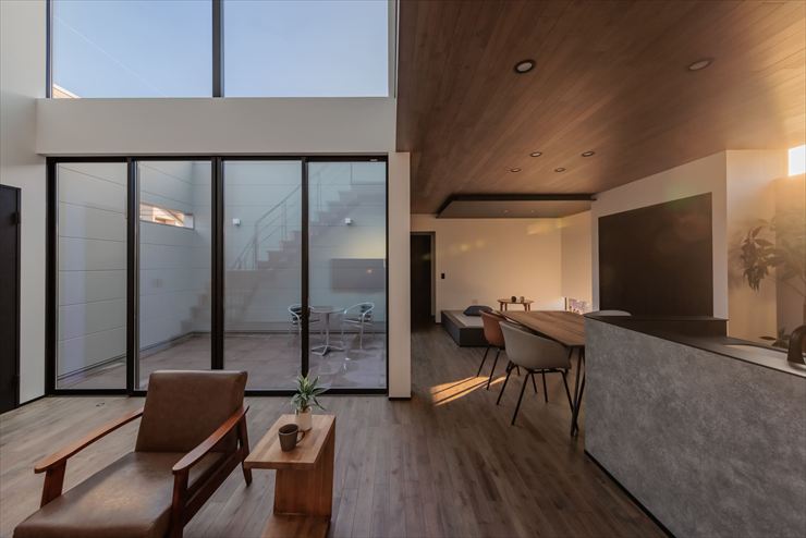 視線を気にせず光を取り込みたい方は、目隠し壁と大開口のある吹き抜けのセットがおすすめです。