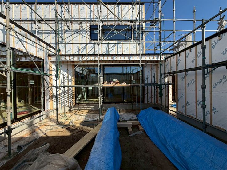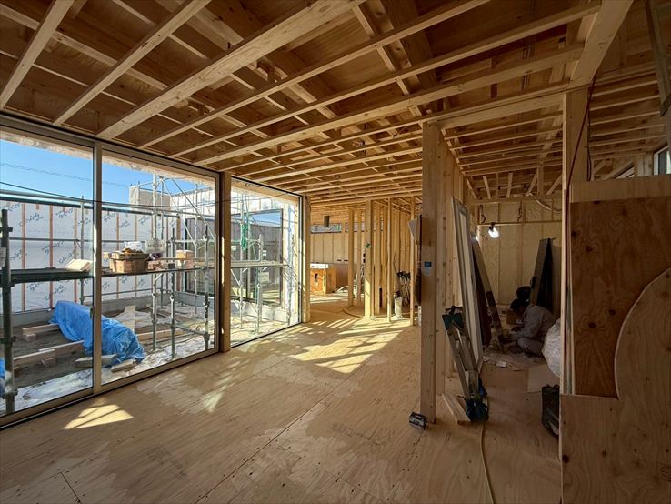 中庭のある住まい。大開口のサッシから入る光が、寒い冬の日でも、気持ちの良い明るさです。