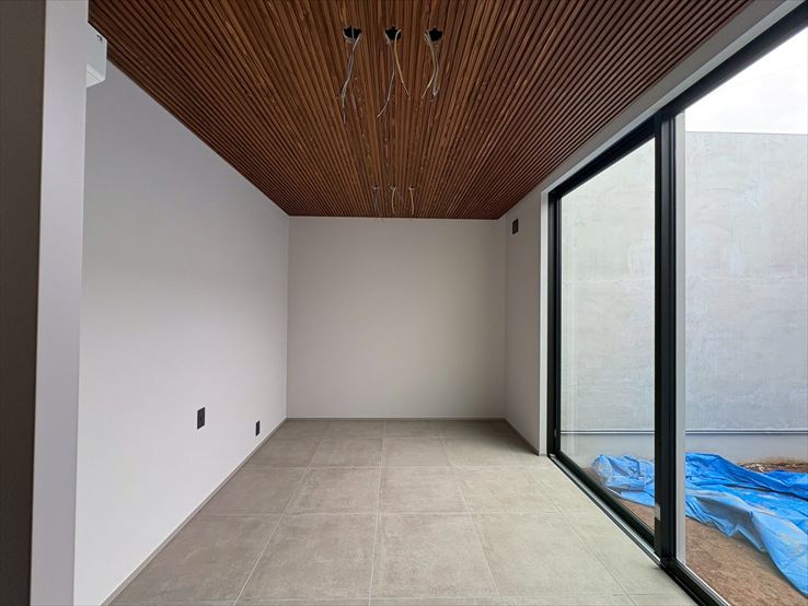 クリーニングが終わりました。タイル張りのLDKとキッチンのリブ天井がいい雰囲気です。寝室の天井もリブ天井で仕上げました。キッチンと寝室でリブのサイズを若干変えてデザインしています。写真ではなかなかわかりにくいのですが、この微妙な変化が雰囲気を変えてくれています。