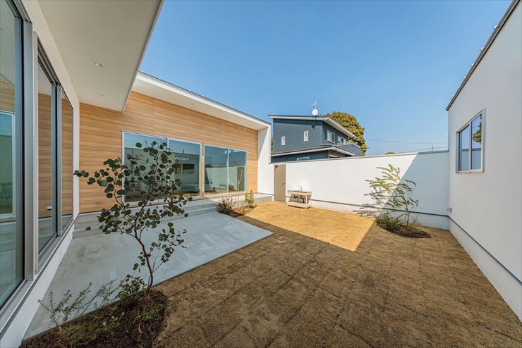 PATIO 広い敷地を活かした、ゆったりとした平屋の住まい。 玄関ドアを開ければ、広い中庭が広がる旅館のような空間。