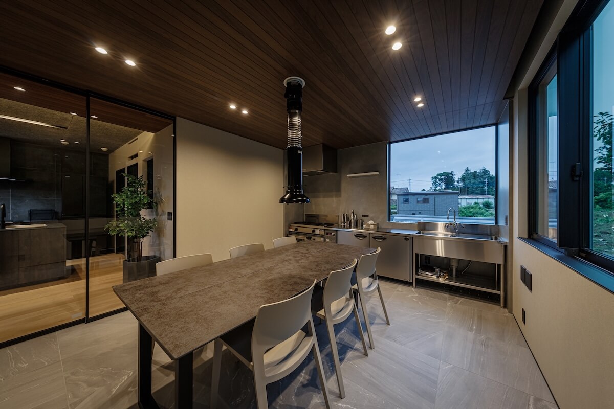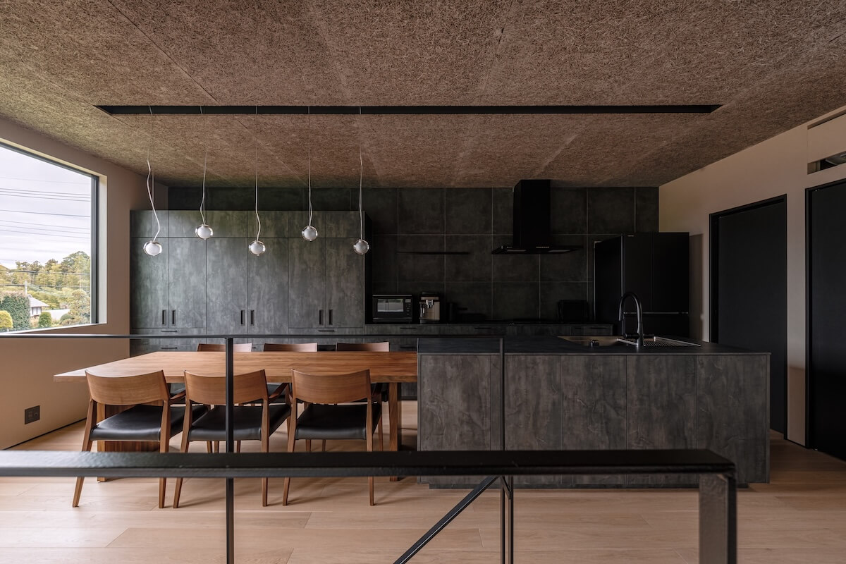 落ち着いたトーンでまとめたキッチンと収納が、空間に奥行きをもたらします。料理を楽しむひとときも、家族や仲間が集う時間も、自然と穏やかに整えてくれる場所です。