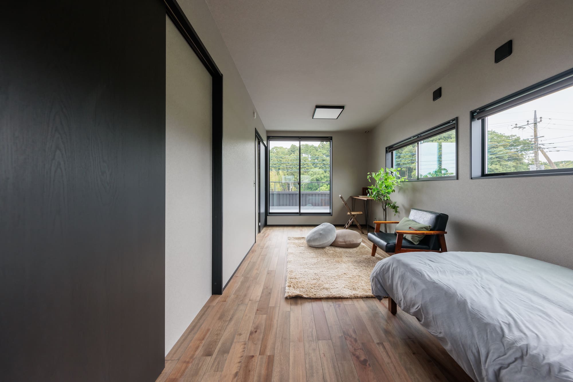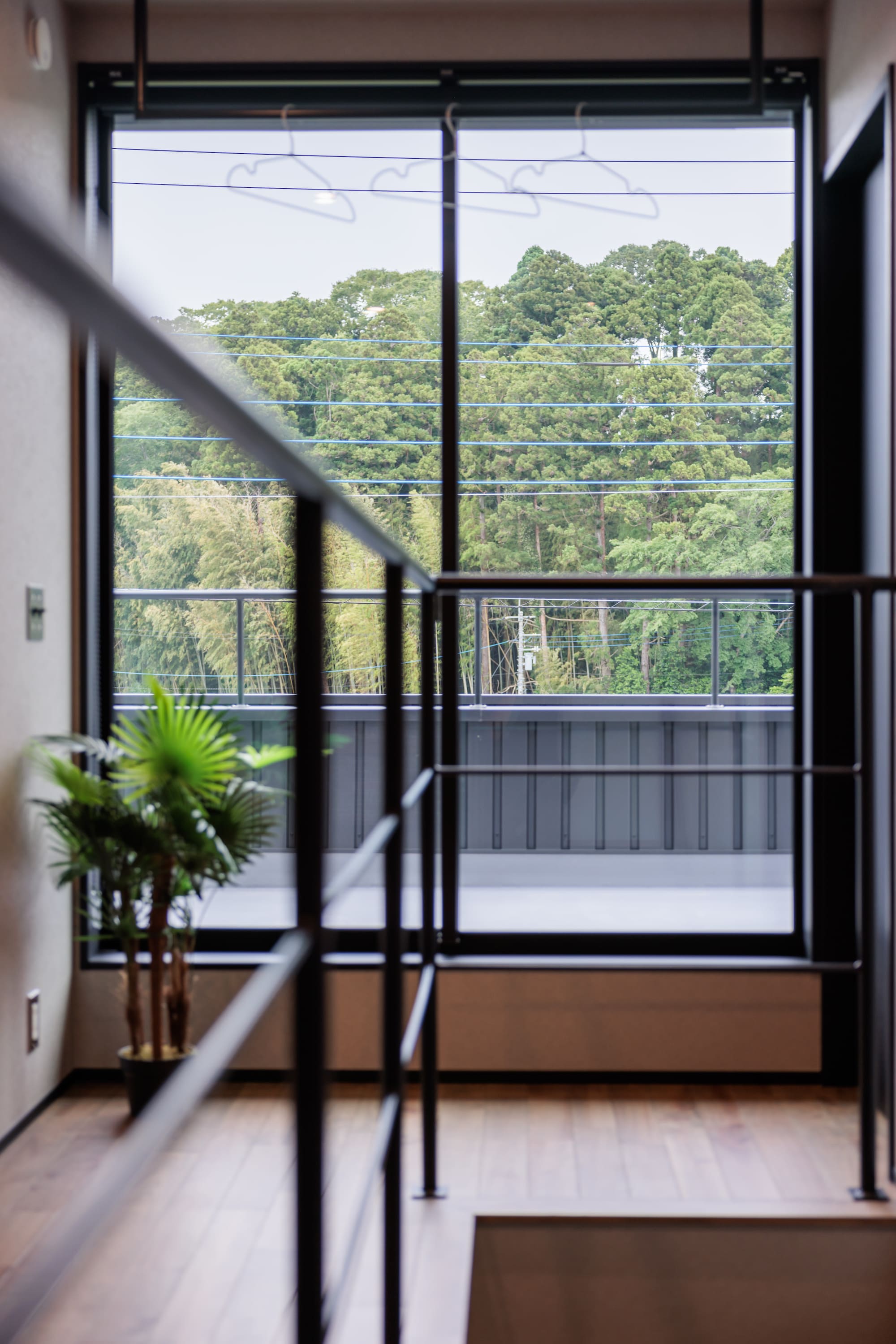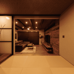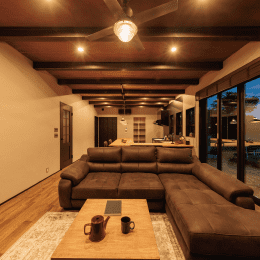 建物前面に広がる田園風景を眺めるリビングは、まるでリゾートのカフェのよう。 こだわりのギミックを詰め込めば、生活感を感じない、カフェスタイルの生活ができそうです。