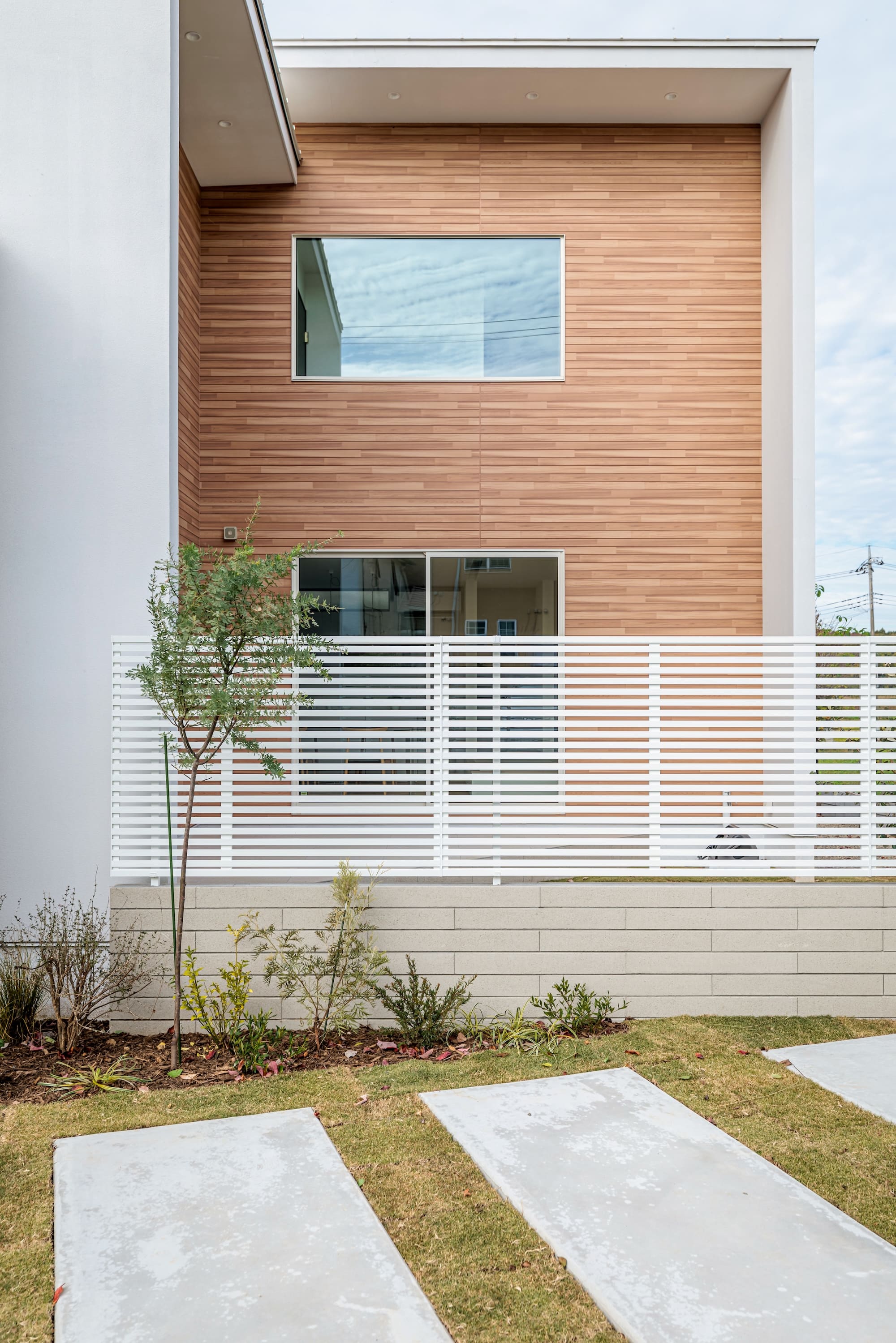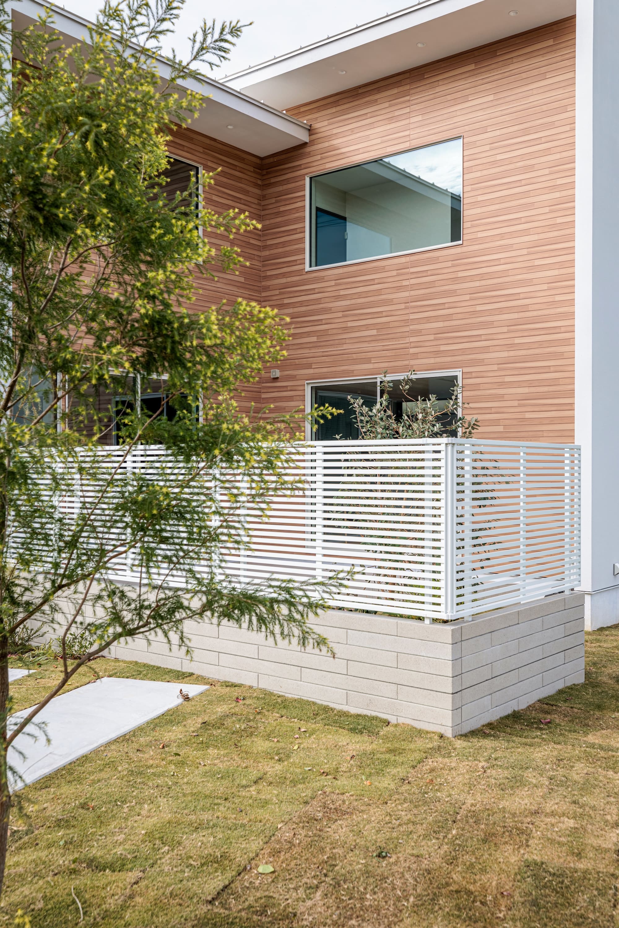 外観は幾層にも重なっているようなファサードにして、オリジナリティを演出しました。