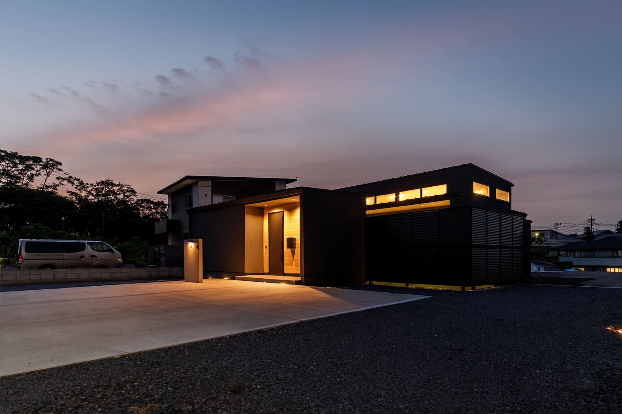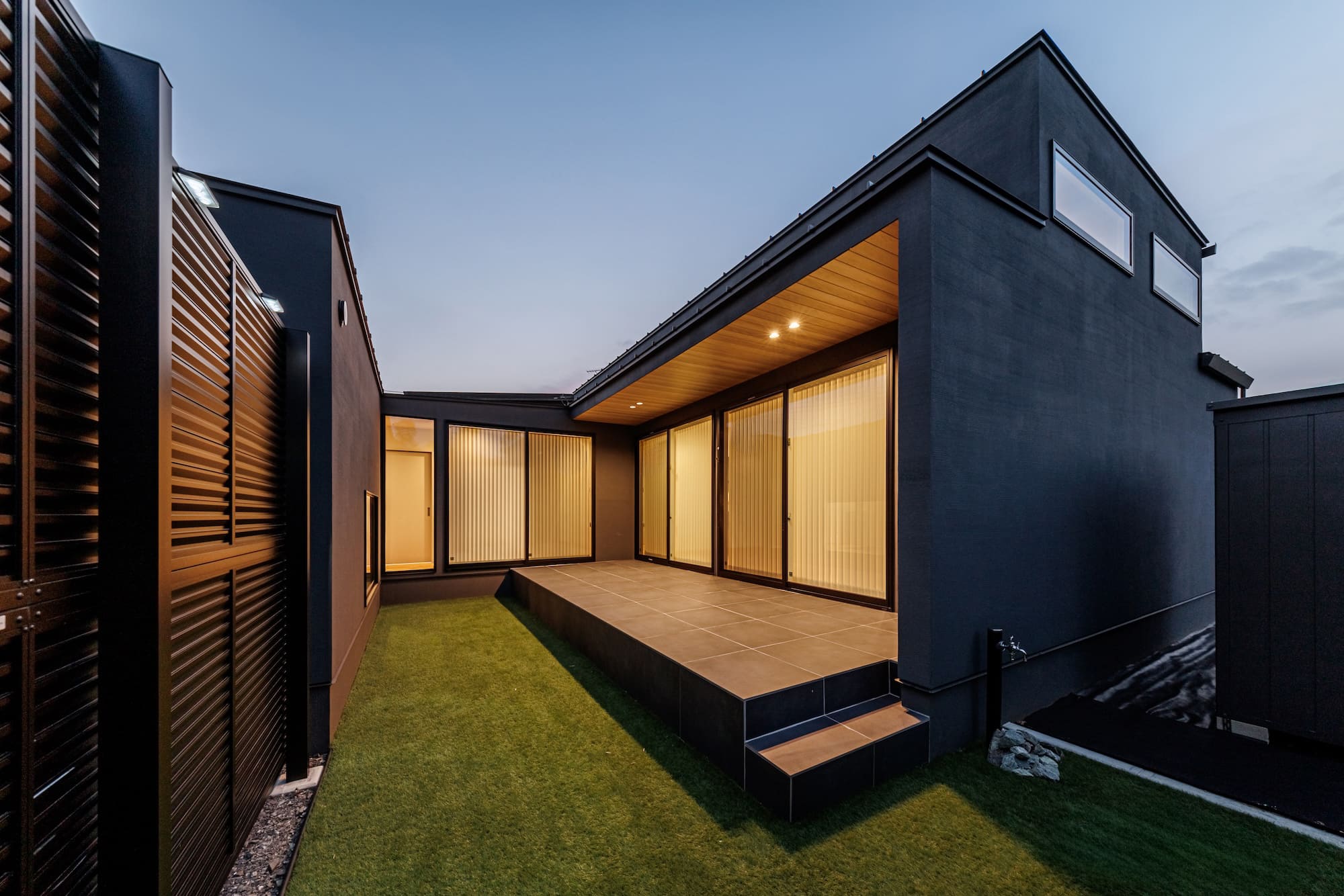 広々とした敷地に、ゆったりとした空間の住まいを作りました。家の中に庭を取り込むようにデザインしたことで、どこからでも外を感じることができます。プライバシーを確保しながら、外との繋がりを両立させた落ち着きのある平屋です。