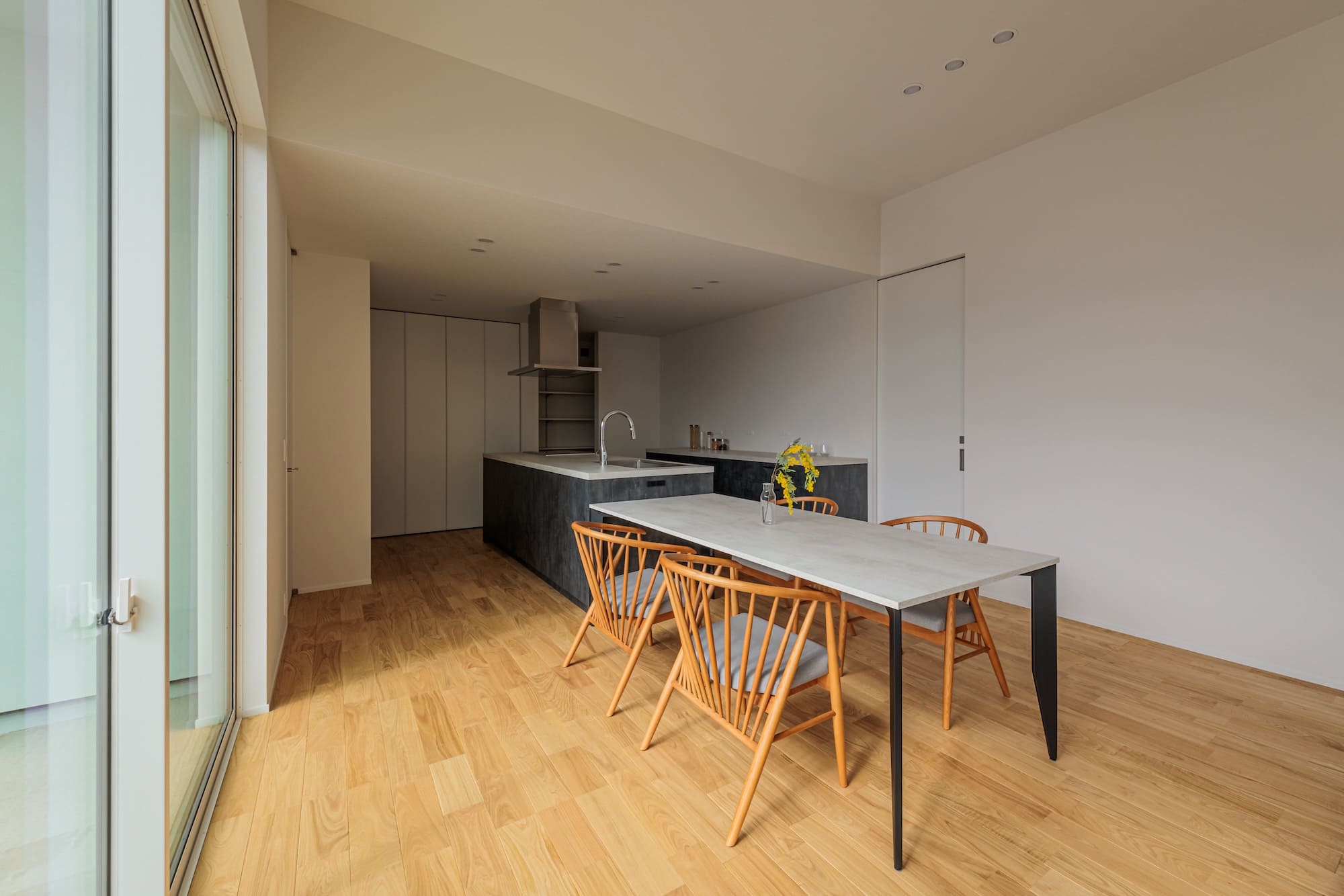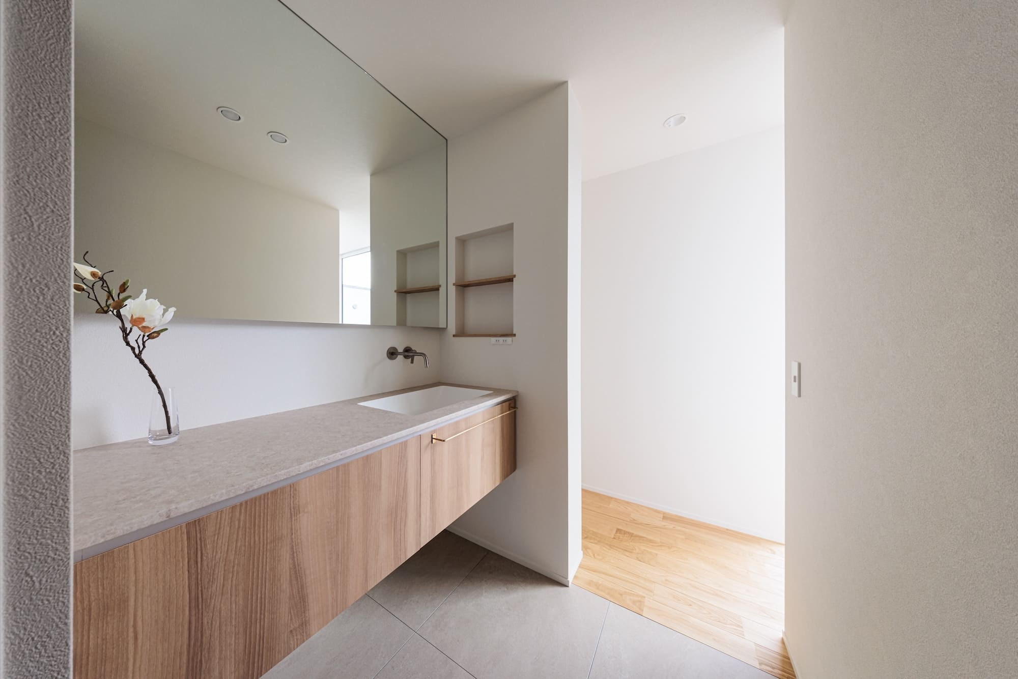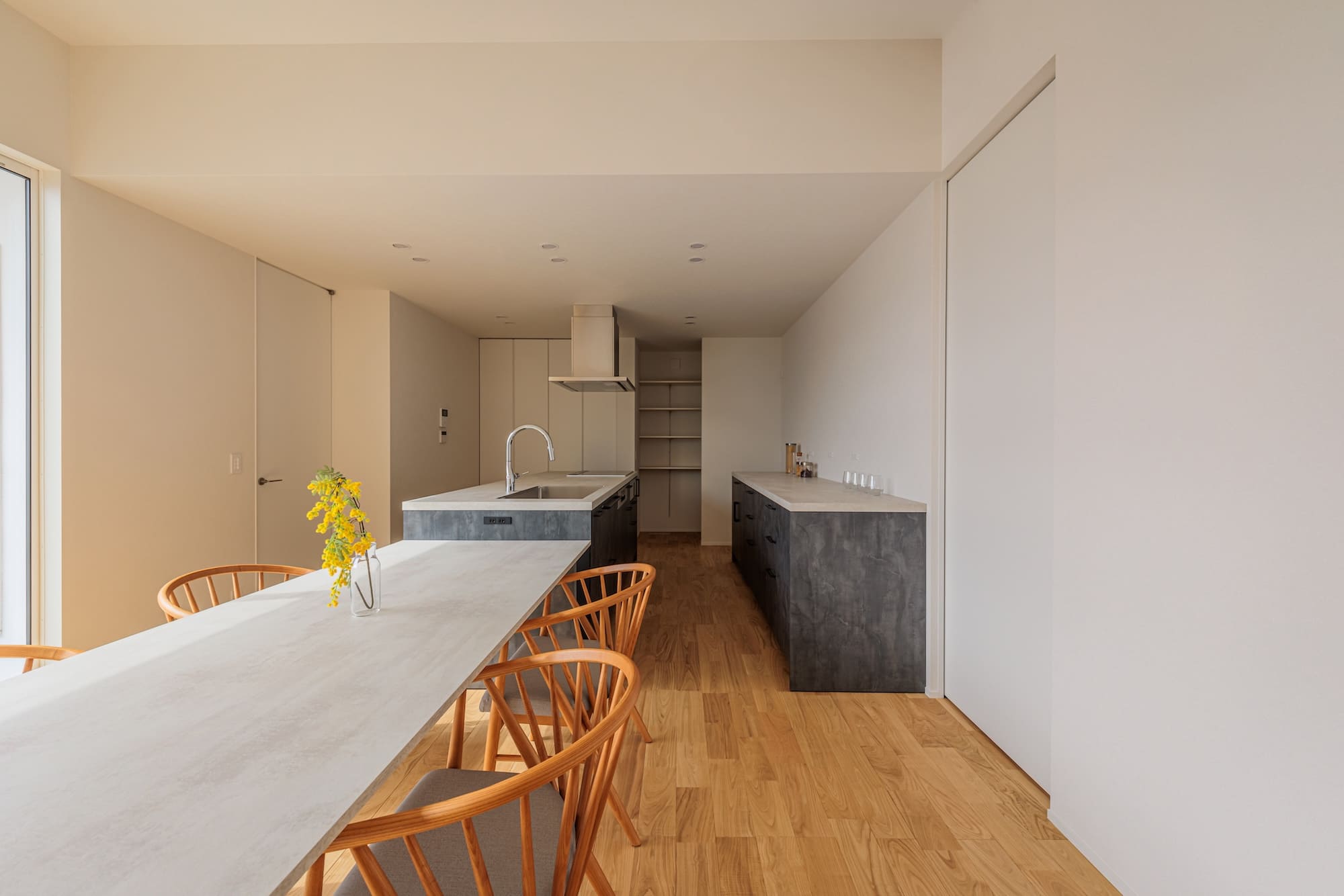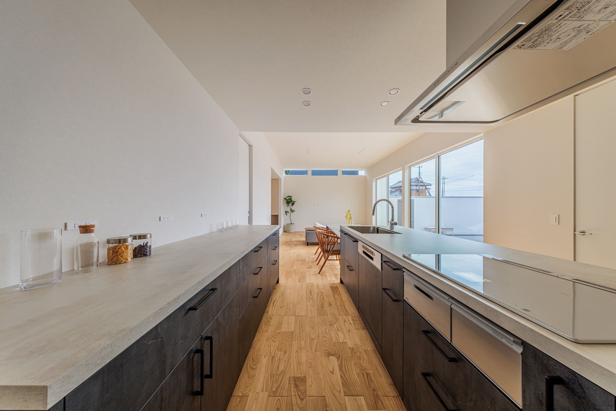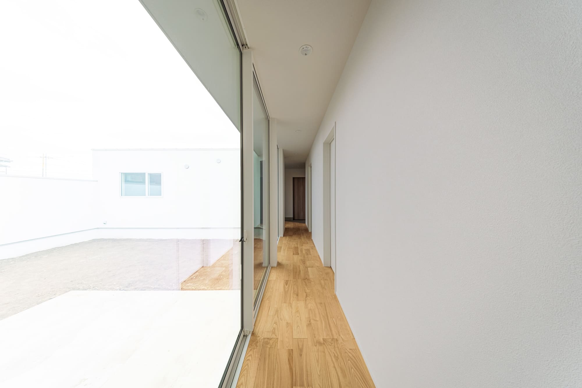 玄関ドアを開ければ、広い中庭が広がる旅館のような空間。