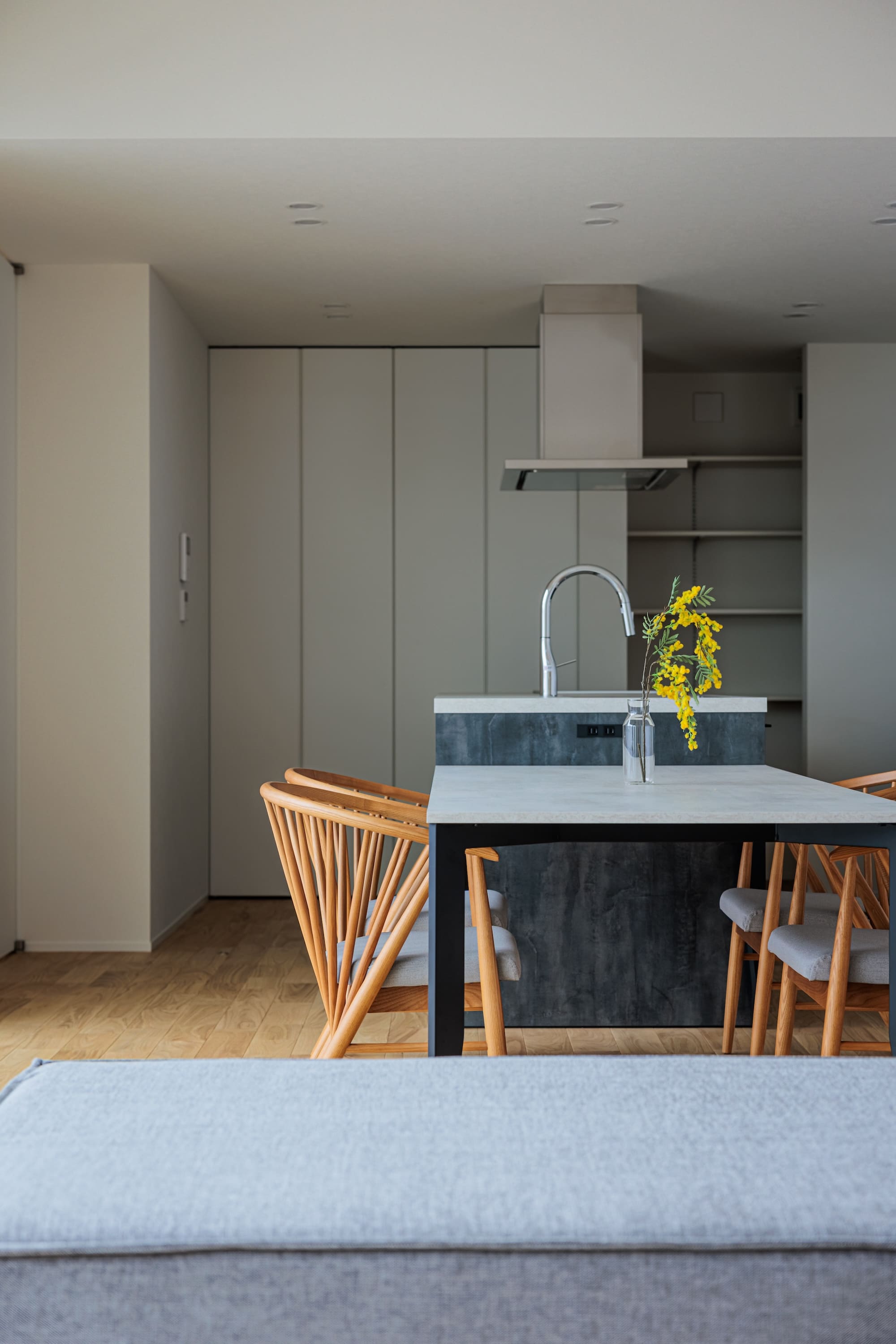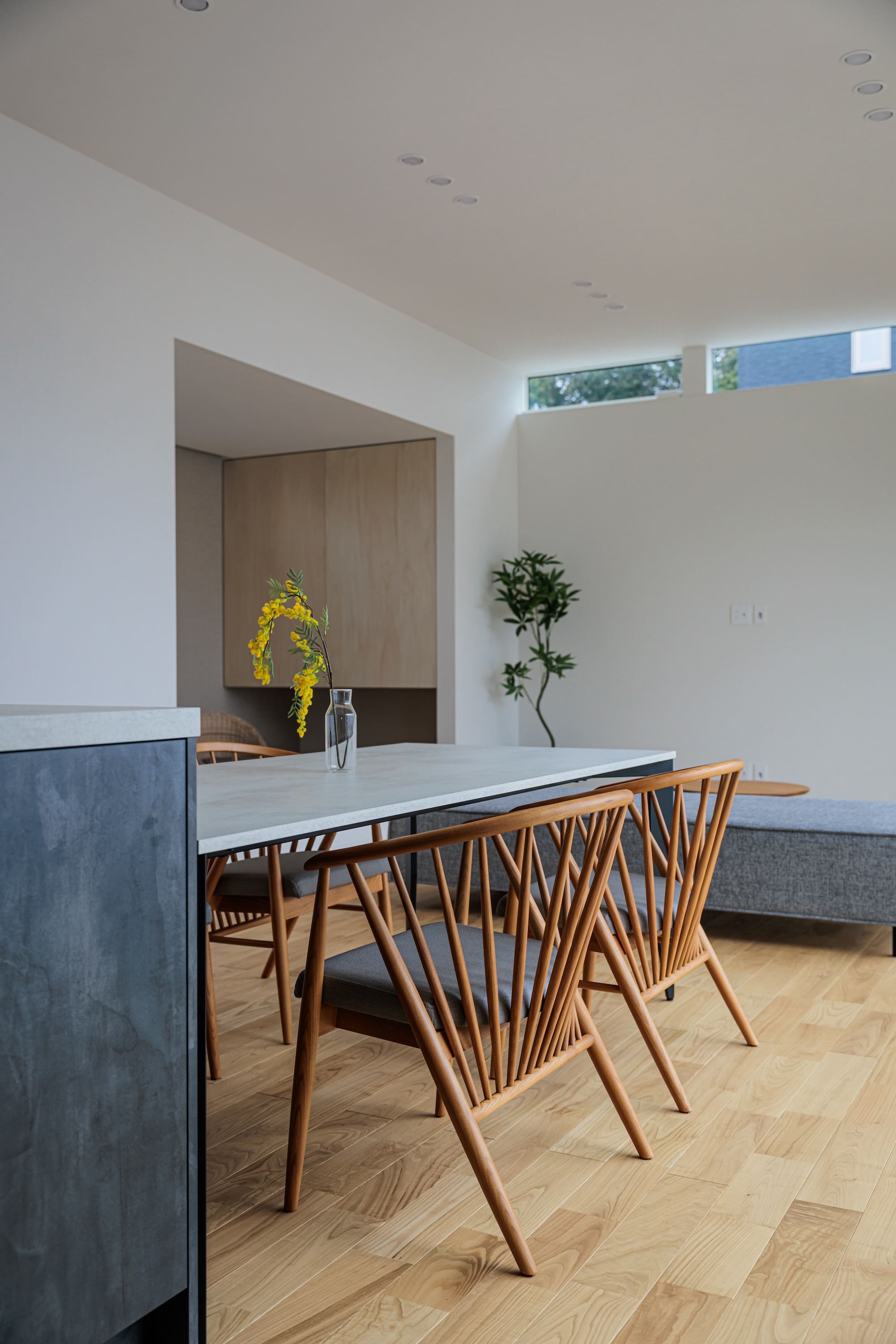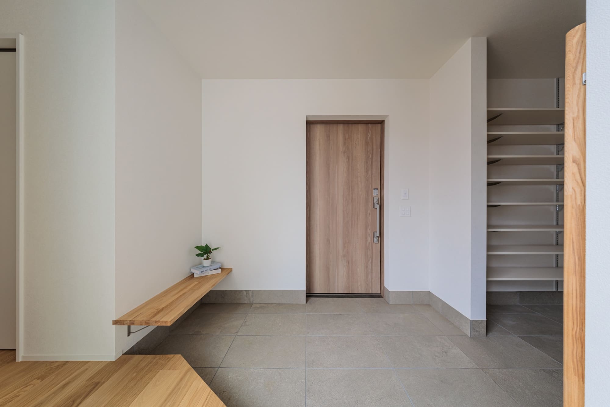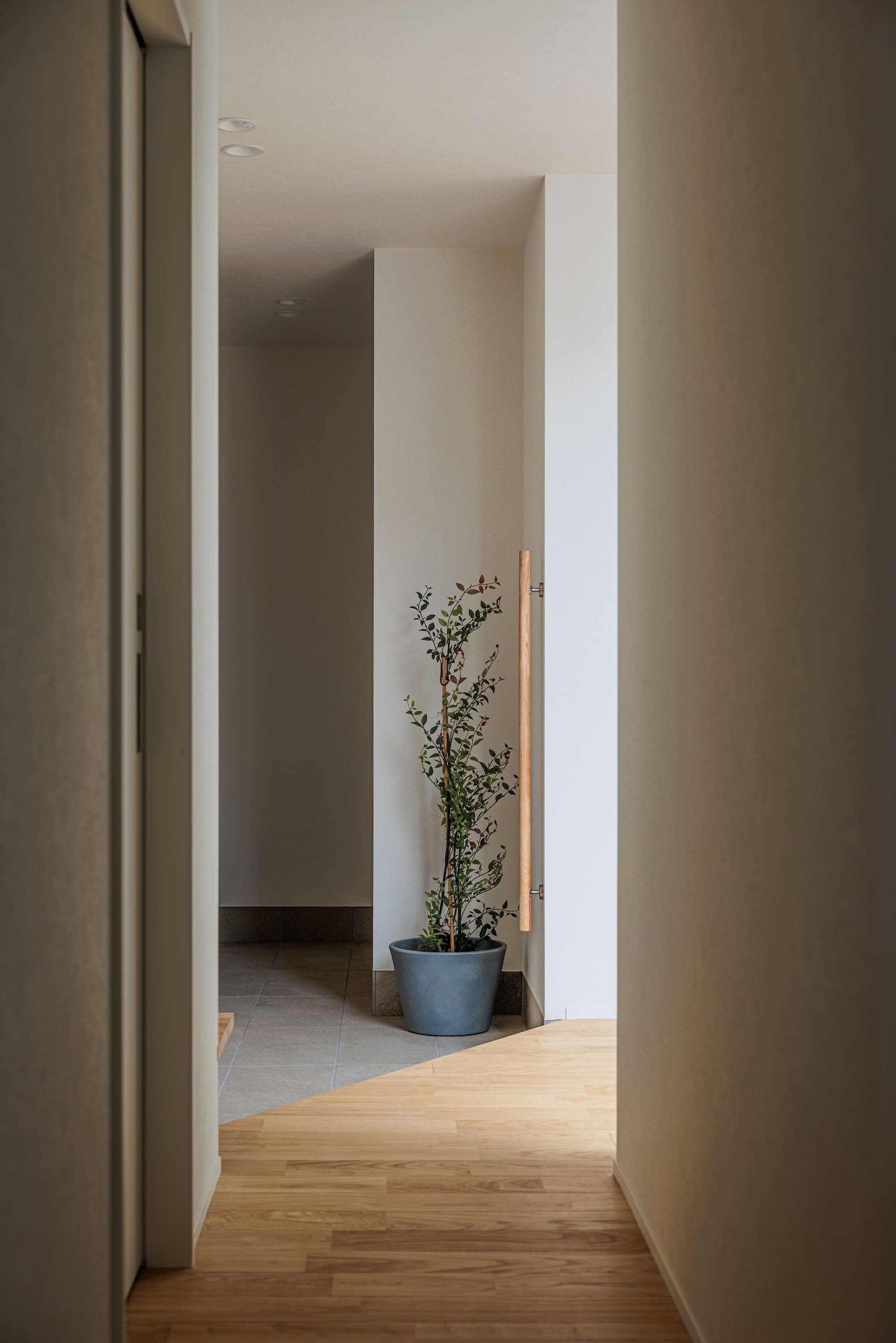 玄関ドアを開ければ、広い中庭が広がる旅館のような空間。